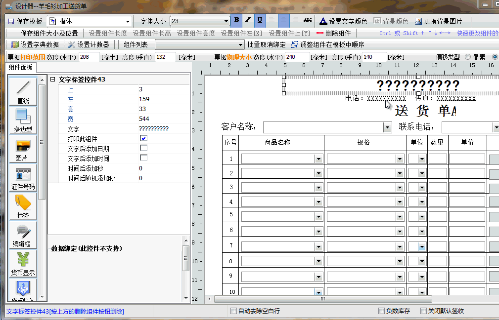 如何使用设计器修改送货单模板|苏州飚风™软件有限公司 }