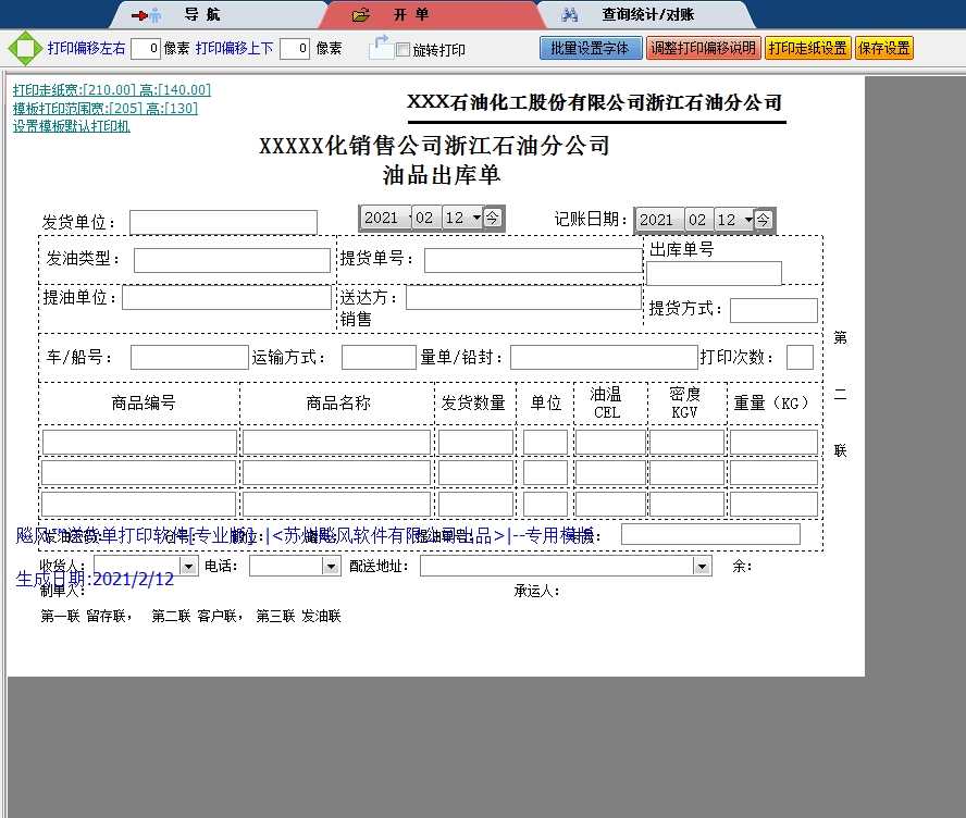 浙江油品出库单