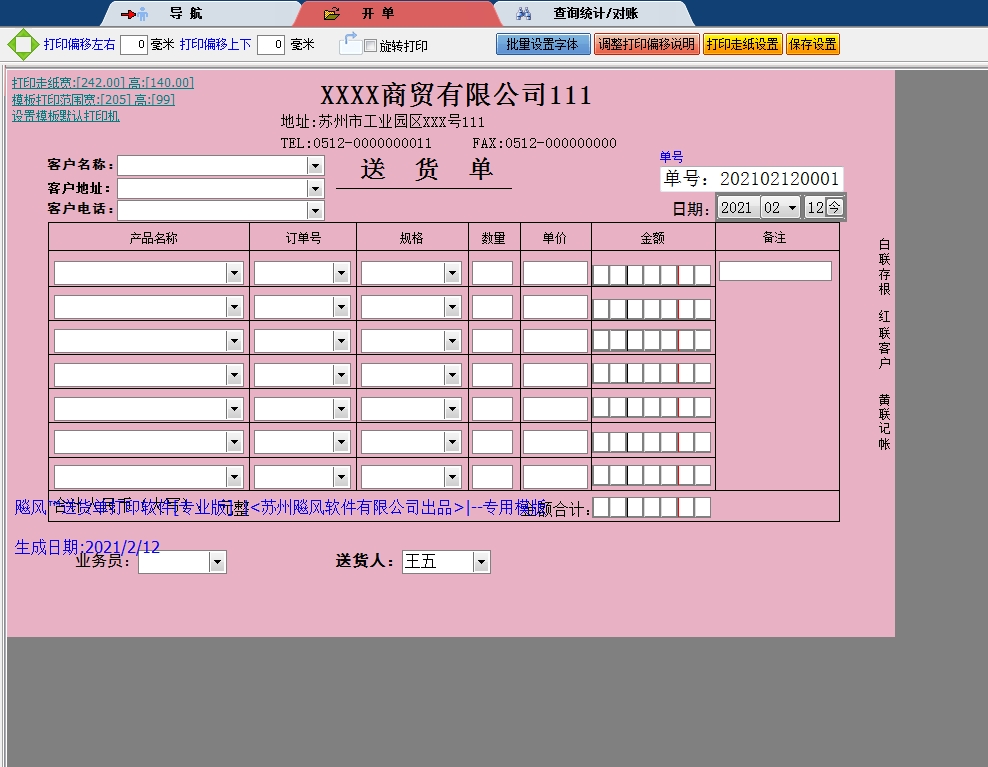 采用开放式结构设计,可根据送货单打印格式、单价及总价合计方式创建模板。
