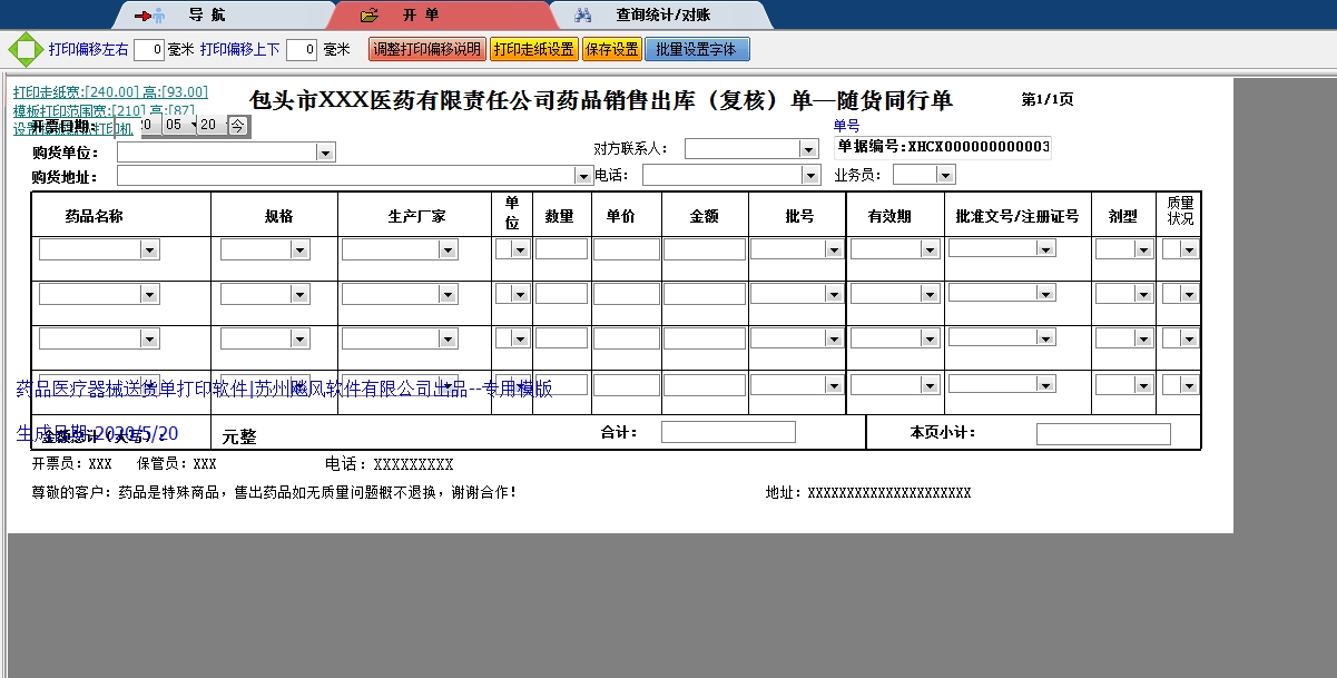 包头市XXX医药打印模版 }