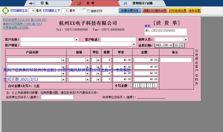 杭州电子科技送货单送货单打印软件 }