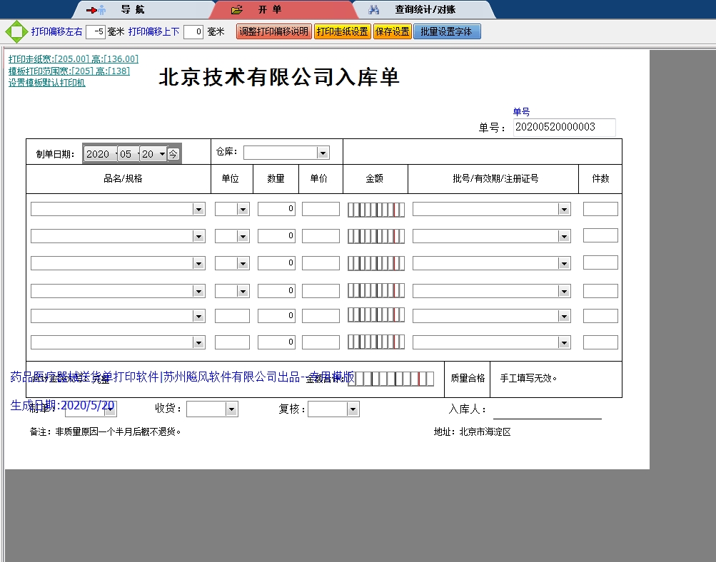 北京生物入库单打印模版 }