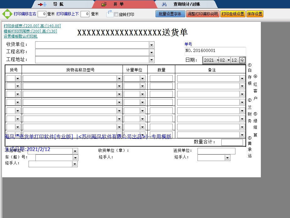采用开放式结构设计,可根据送货单打印格式、单价及总价合计方式创建模板。