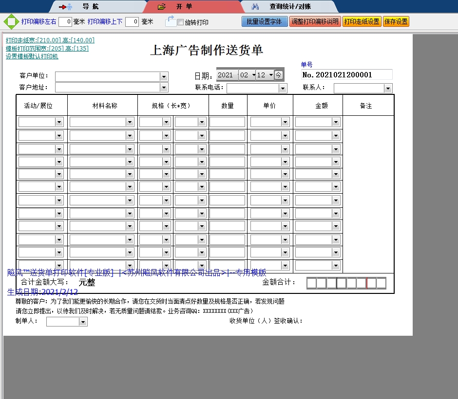 采用开放式结构设计,可根据送货单打印格式、单价及总价合计方式创建模板。