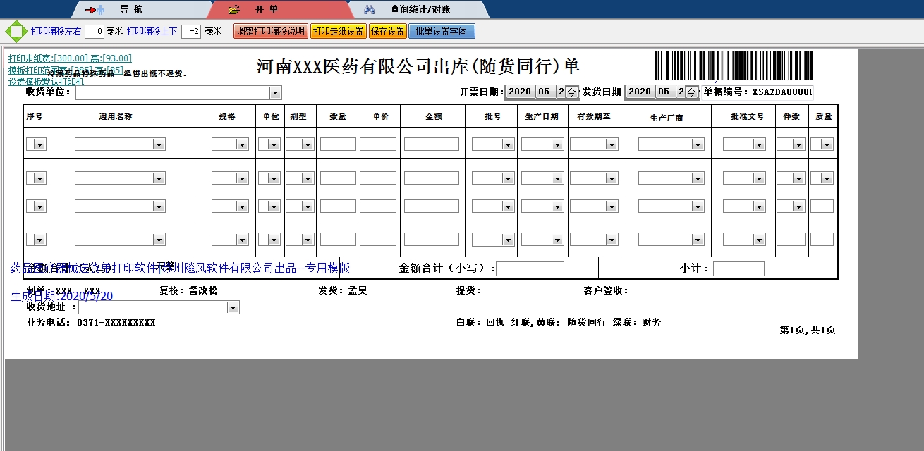 河南XX医药打印模版 }