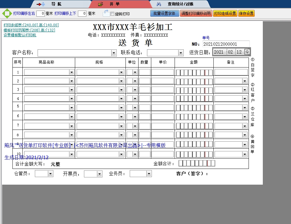 采用开放式结构设计,可根据送货单打印格式、单价及总价合计方式创建模板。