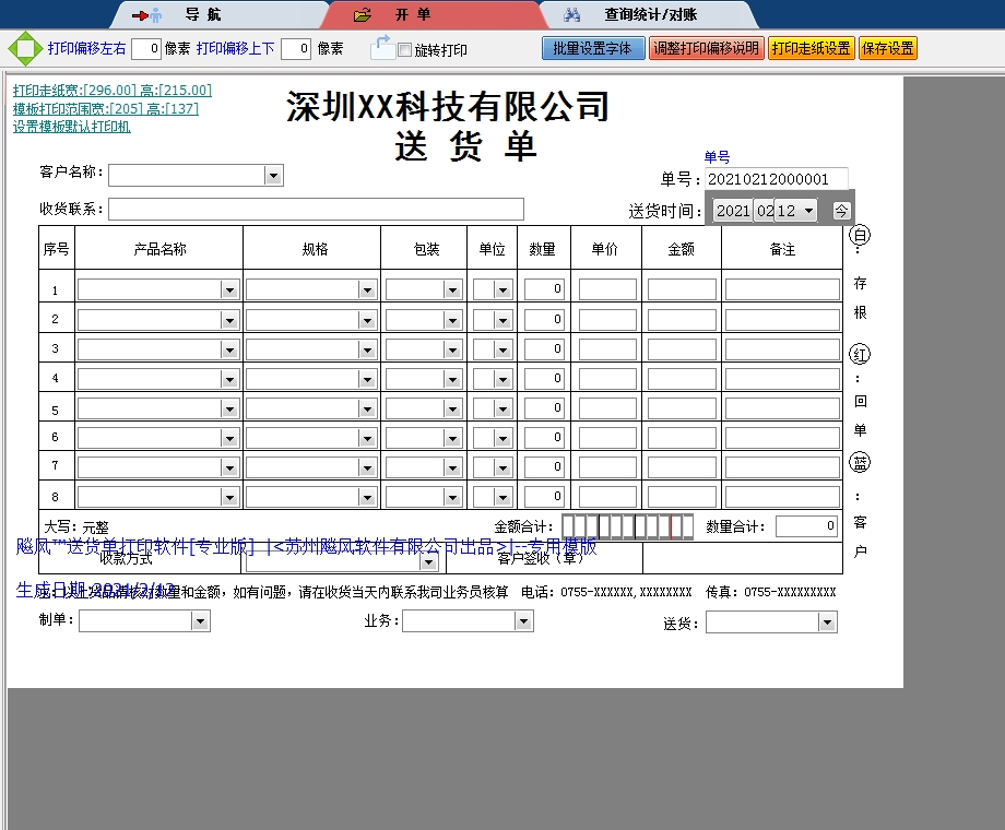 采用开放式结构设计,可根据送货单打印格式、单价及总价合计方式创建模板。