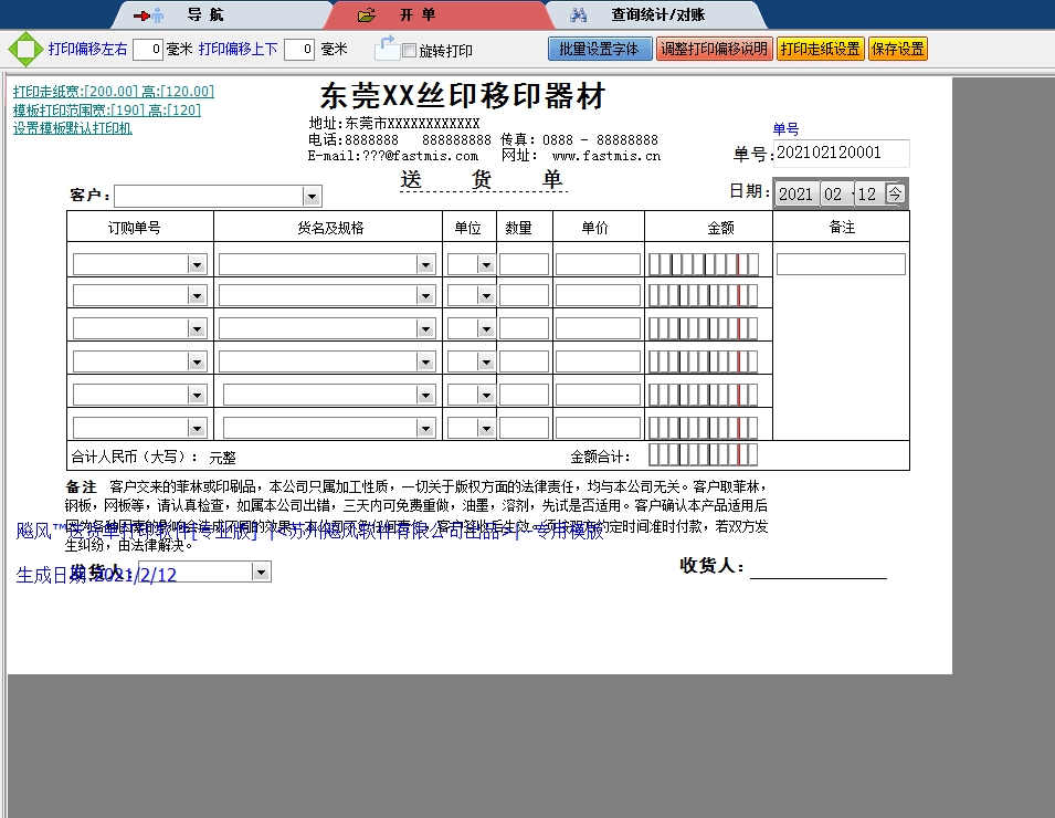 送货单打印、销售单打印、出货单打印、发货单打印、收款收据打印