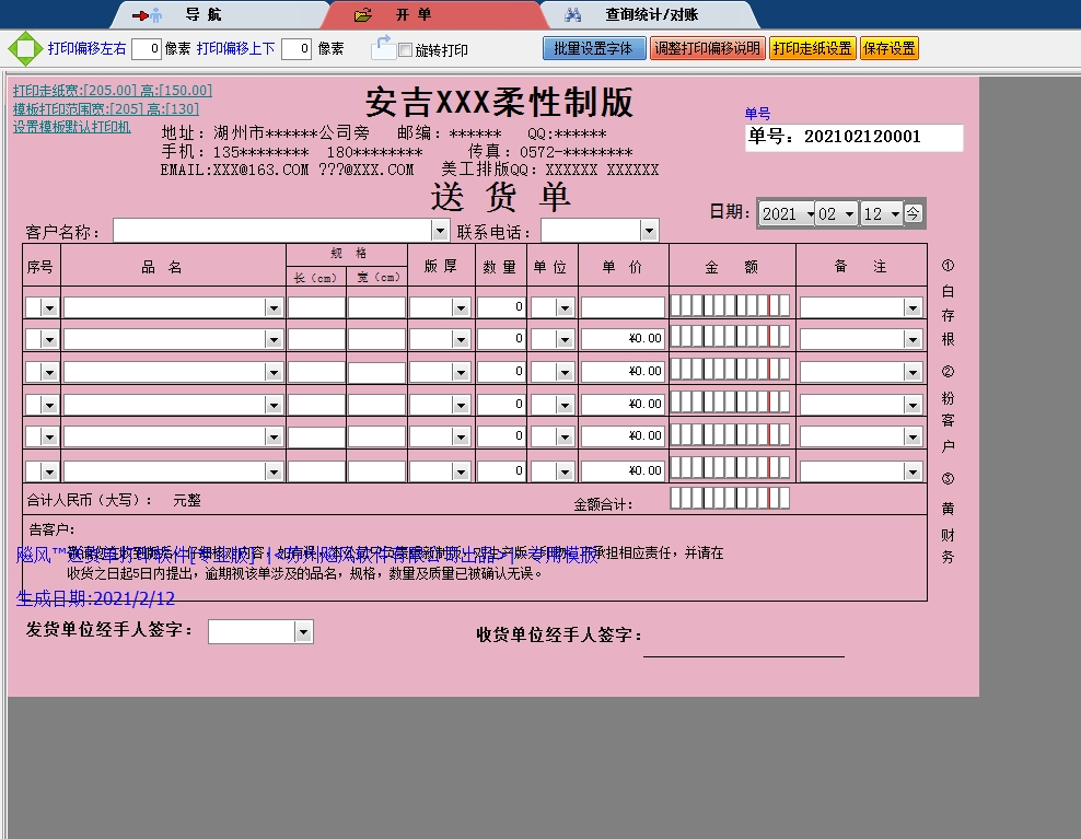 采用开放式结构设计,可根据送货单打印格式、单价及总价合计方式创建模板。