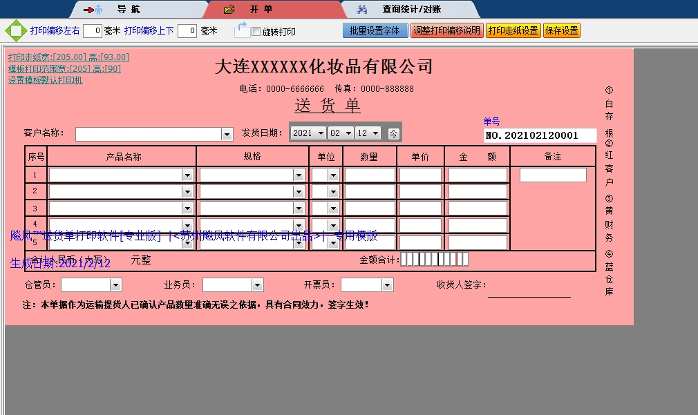 采用开放式结构设计,可根据送货单打印格式、单价及总价合计方式创建模板。