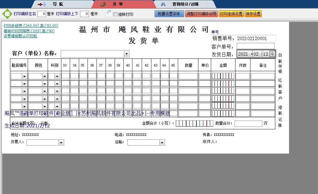 采用开放式结构设计,可根据送货单打印格式、单价及总价合计方式创建模板。