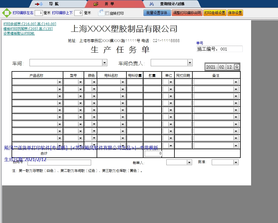 生产任务单