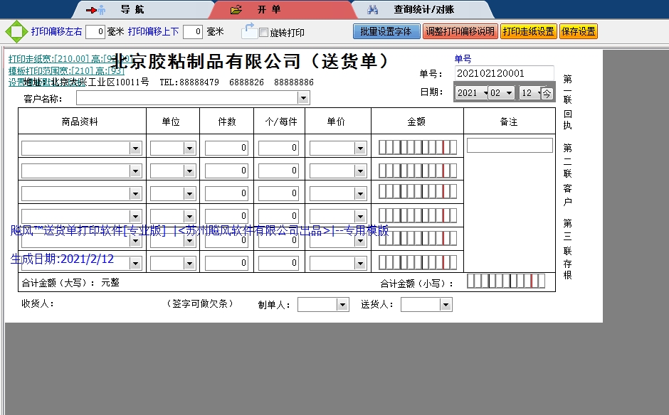 送货单打印、销售单打印、出货单打印、发货单打印、收款收据打印