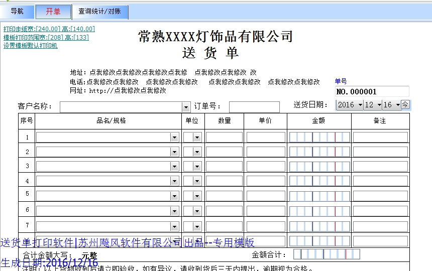 | 客户名称: 送货日期: 序号 数量 单价 金额 合计金额大写: 金额合计: 备注 常熟XXXX灯饰品有限公司 单位 1 2 3 4 5 网址:http://点我修改点我修改 电话:点我修改点我修改 点我修改点我修改 点我修改点我修改 点我修改点我修改 送 货 单 品名/规格 6 7 8 订单号: 地址:点我修改点我修改点我修改点我修 点我修改点我修改 改 制 单 人: 收货单位及经手人: 注明:以上货物收到后请立即验收,如有异议,请收到货后三天内提出,逾期视为合格。 | ||||||||||