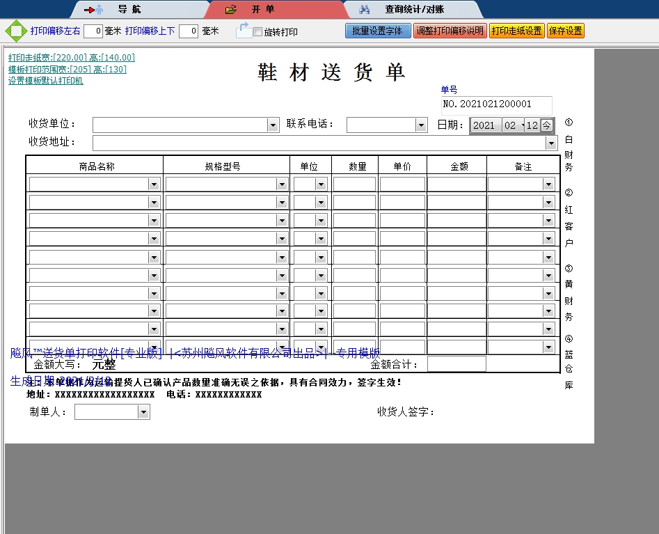 采用开放式结构设计,可根据送货单打印格式、单价及总价合计方式创建模板。